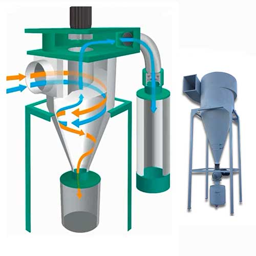 içerisindeki toz ve partikülleri merkezkaç kuvveti kullanarak ayıran sistemlerdir. Merkezkaç kuvveti sayesinde toz partikülleri dış duvarlara çarparak toplama haznesine düşer. Özellikle büyük partikülleri toplamak için kullanılır ve genellikle ön filtreleme sistemi olarak tercih edilir.